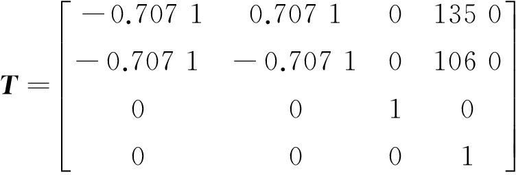 将数据输入程序,得关节坐标θ1=-15.057 0,θ2=-95.902 0,θ3=-137.677 2,θ4=79.780 0,θ5=-97.213 1,d6=-1 984.1。