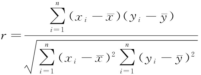 在剩余使用寿命预测中,一般靠主观经验使用振动信号的均方根值或小波包分解后各频带能量[10-11]作为特征量输入预测模型。靠主观经验选择的特征量不一定能反映设备寿命状态变化趋势。相关系数(r)是反映变量(xi,yi)之间相关关系密切程度的统计指标,其计算公式如下: