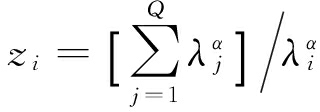 式中:ωi为权重;zi为中间变量;λj与λi为最大相似度;Q为样本数据个数;α为权重系数,其值越大,权重会更多地分配到相似度高的样本数据上。
