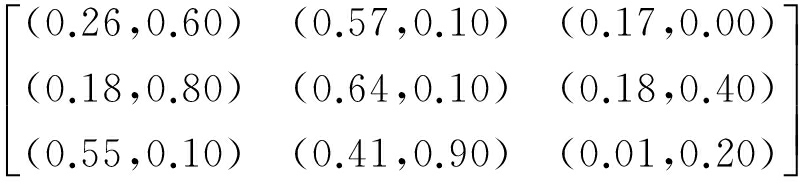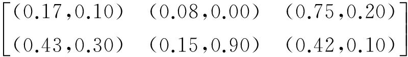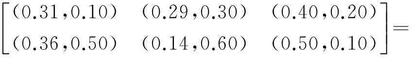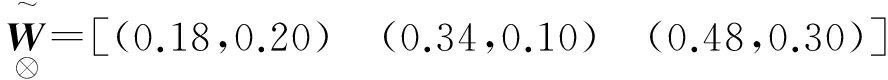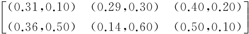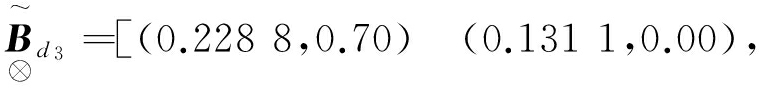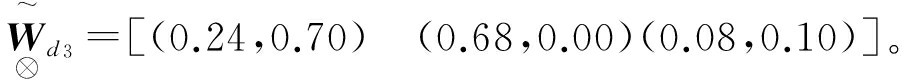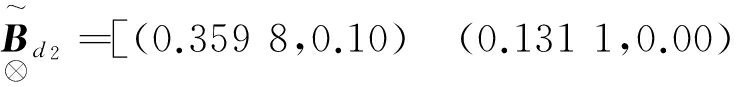 d1=[(0.45,0.30) (0.55,0.60)],检修指标d2的评价因素权重矩阵为