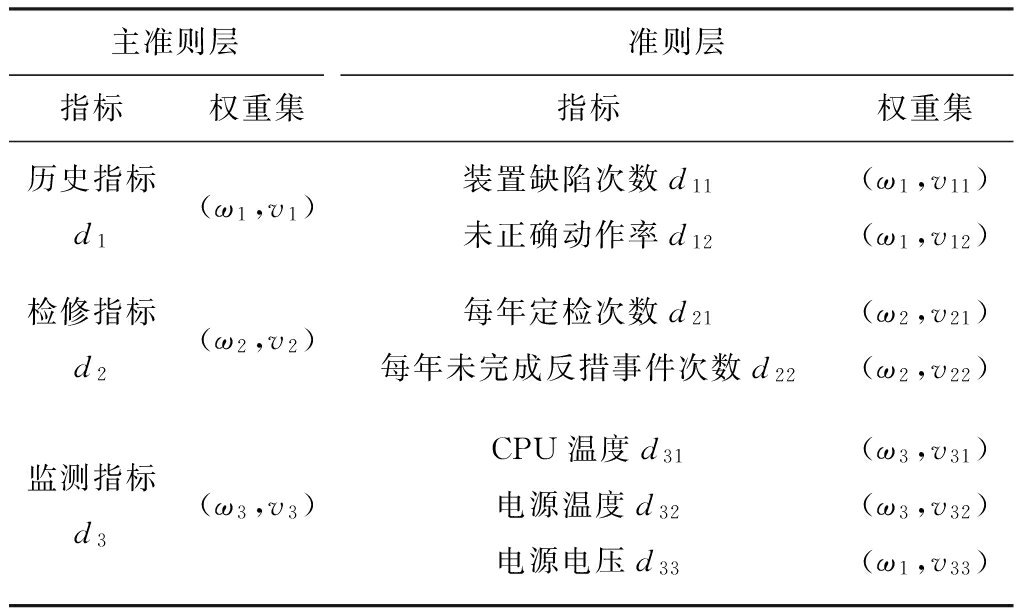 (1) 建立评判指标集。针对继电保护装置运行、维修的历史记录及相关可靠性数据,为使评价指标真实、易于实际操作和降低成本,建立了继电保护装置状态评价体系,见表2。