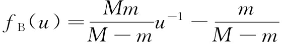 对于负指标,当u=M时,令fB(u)=0;当u=m时,令fB(u)=1。负指标隶属函数为