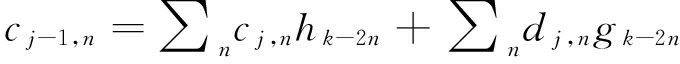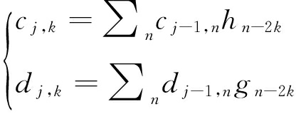 式中:cj,k为尺度系数,j为分解层数,k=0,1,…,N-1,N为离散采样点数;dj,k为小波系数;n=2j;h,g为一对正交镜像滤波器组。