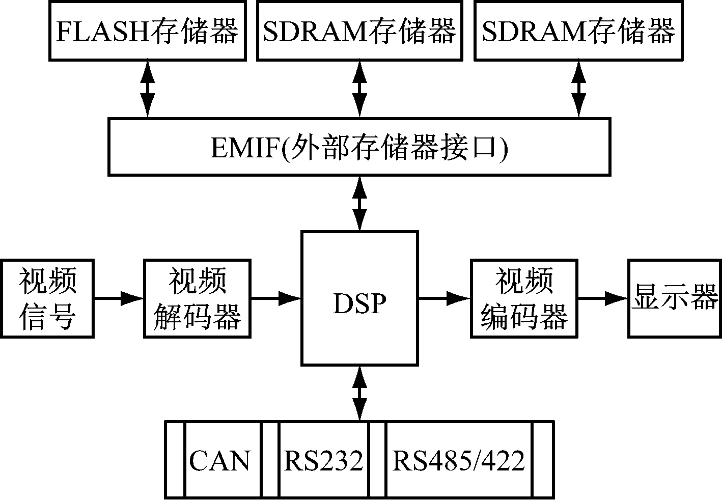 (4) 通信接口:扩展CAN通信模块,用于图像清晰化装置与主机的数据通信,并配置RS232、RS485或RS422接口与PC机连接,用于调试。