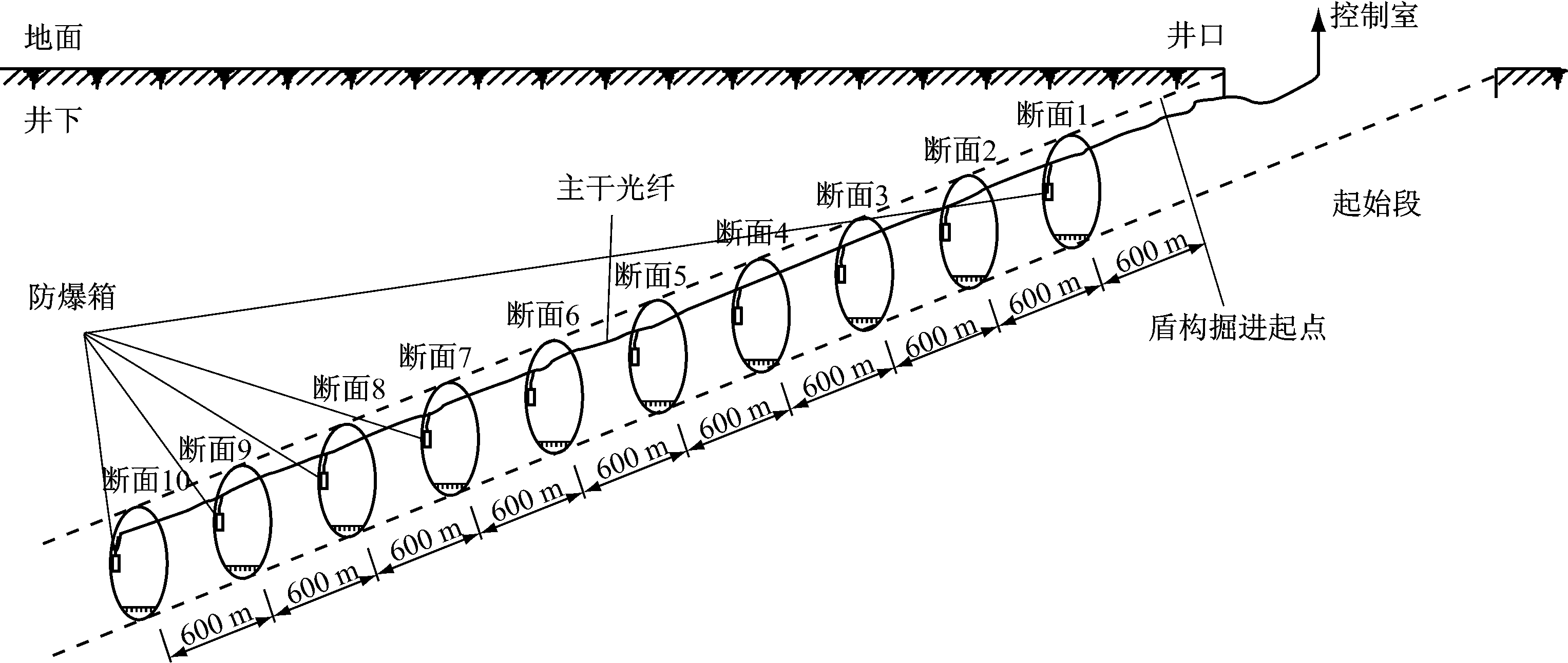 斜井盾构施工与状态参数、结构安全与健康状态监测参数通过光纤进行远距离传输。盾构施工与状态参数通过系统传感器采集,结构安全与健康状态监测参数等由数据采集仪进行数据采集。数据采集仪留有数据接口,可与光纤数据协议转换器进行数据交换,之后进行光纤远程传输。