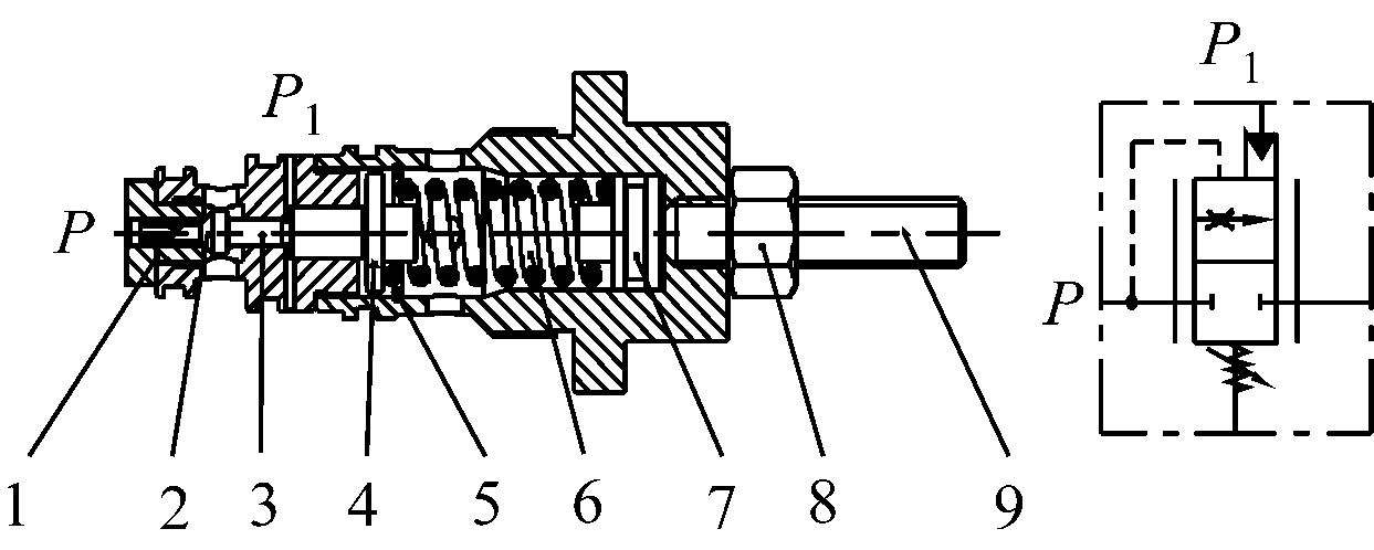 6-弹簧;7-调节塞;8-锁紧螺母;9-调节螺钉