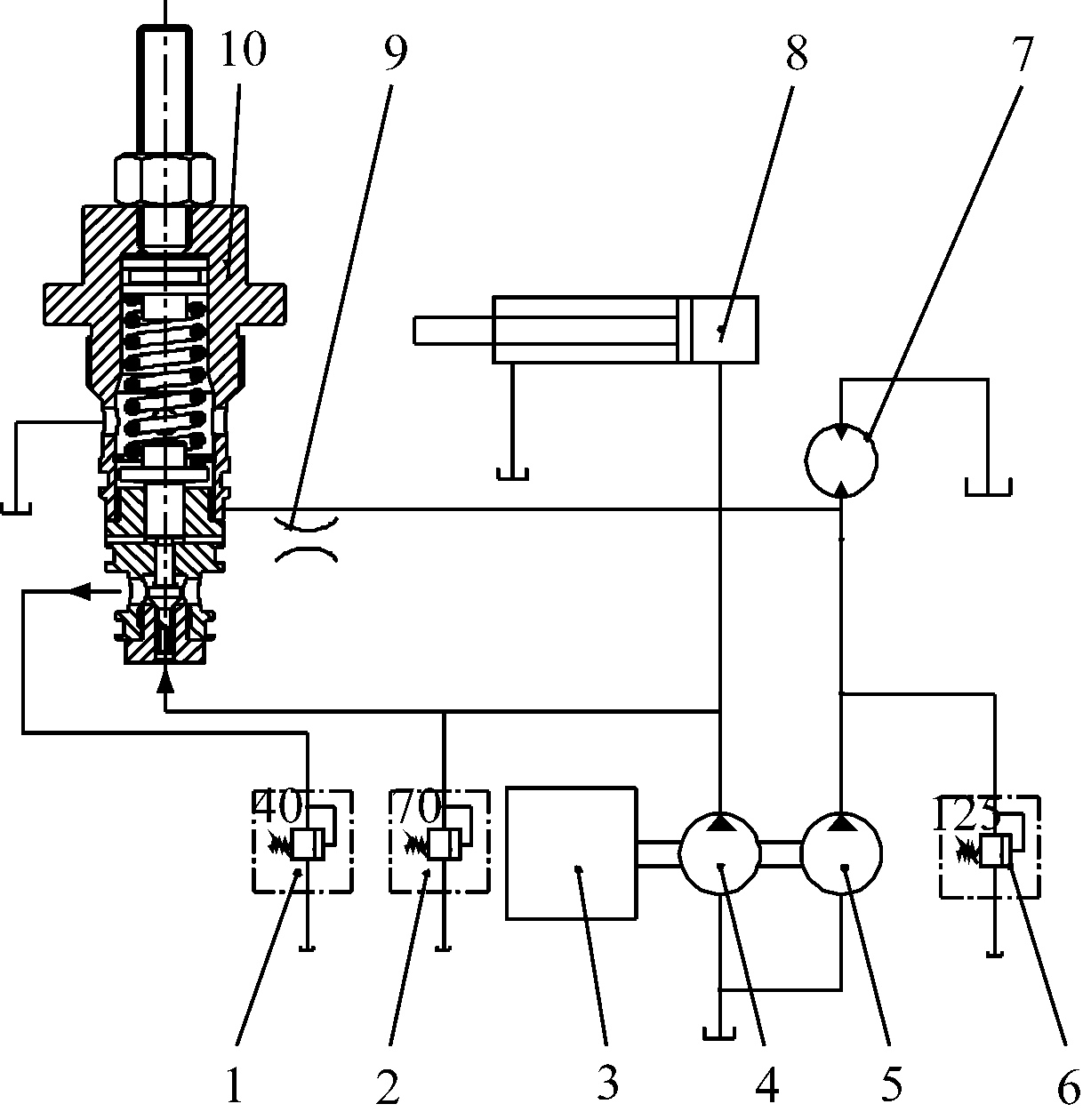 1-低压推进溢流阀;2-高压推进溢流阀;3-发动机;