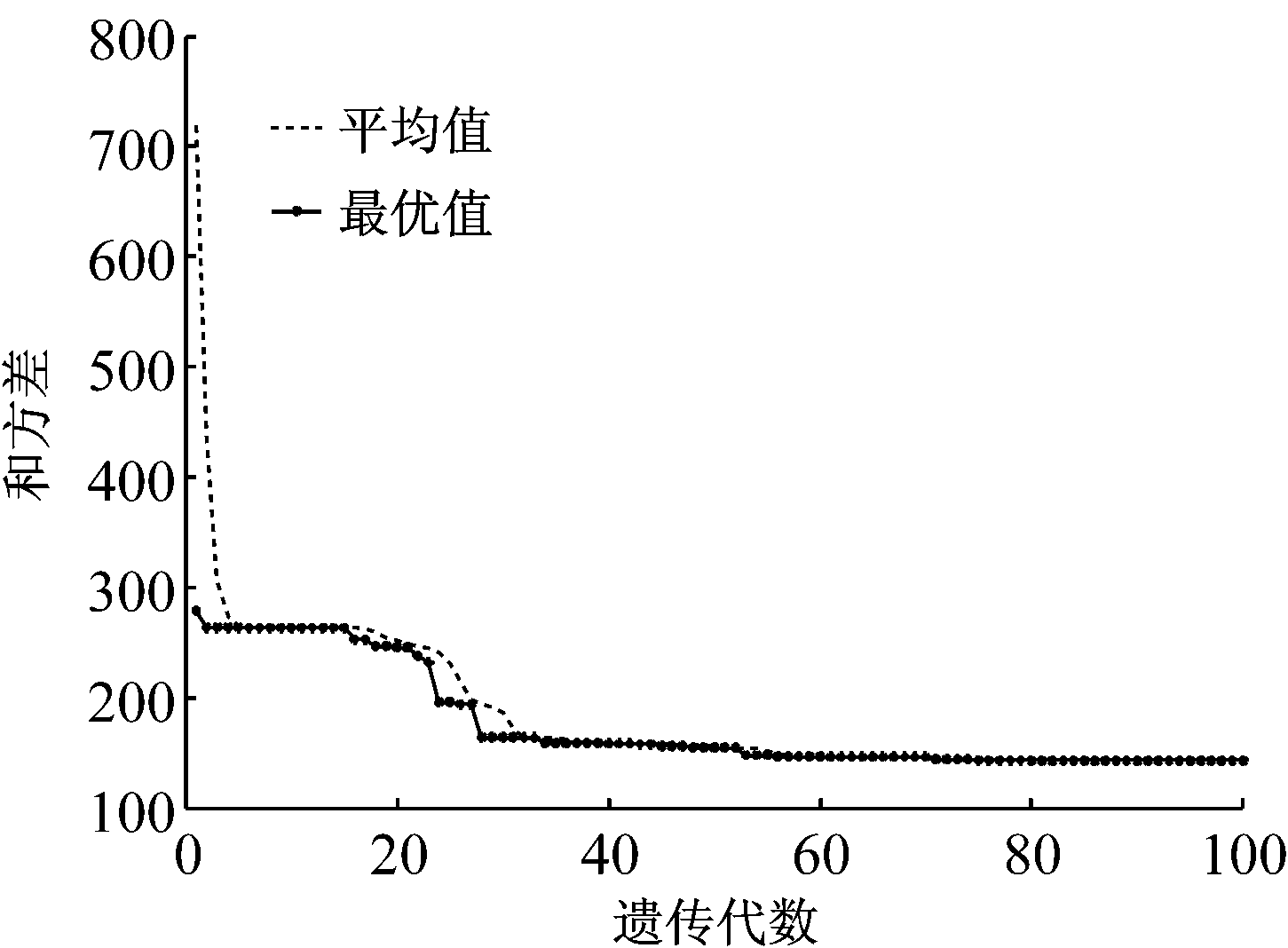 图9为遗传算法的和方差变化曲线,当遗传算法收敛时,SSE随着遗传代数的增加而减小。