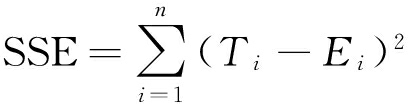 (2) 计算种群个体的适应度值。分配初始种群的权值和阈值S到BP网络,输入信号向前传播,计算输出值和期望值之间的和方差(Sum of Squared Errors,SSE),适应度函数可以表示为SSE的倒数: