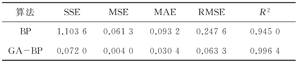 表3 BP神经网络模型和GA-BP网络模型的预测误差