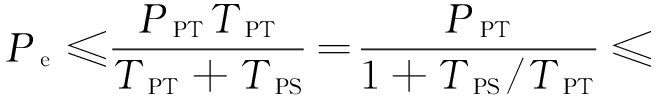 Rloss随TPT的减小而减小,随TPT的增大而增大。假设1个输能周期(TPS+TPT)内的能量发送功率为PPT,平均能量传输功率为Pe,则有