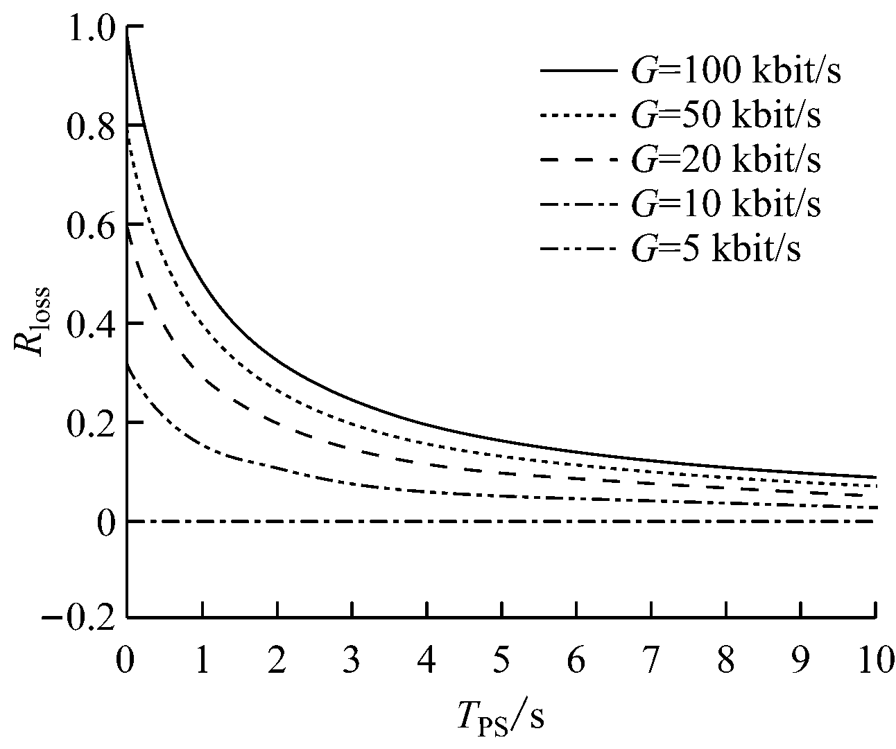 图4为Rloss在不同G下随TPS的变化曲线。可看出G小于100 kbit/s时,G越小,则Rloss越小;G大于100 kbit/s时,Rloss差别不大。因此根据需要,适当控制G在100 kbit/s以下,即可在一定程度上降低Ploss。
