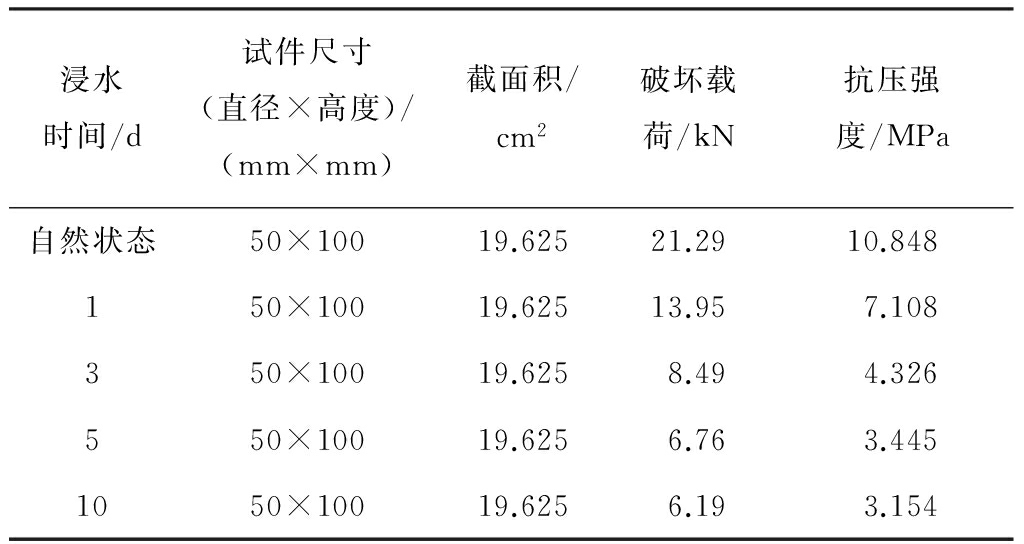 表4 煤样浸水后破坏载荷和单轴抗压强度测定结果