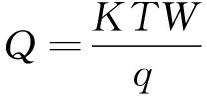 式中:Q为单个注水孔的注水量,m3;q为水的密度,kg/m3;K为富余系数,一般为1.00~1.55;T为一个注水孔承担的湿润煤量,t;W为预计含水率增值(取3%)或者设计含水率增值。