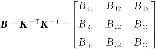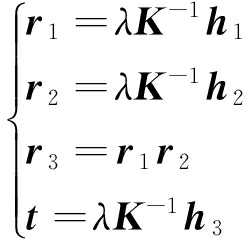 由式(2)得出K的内部参数后,可求取其外部参数: