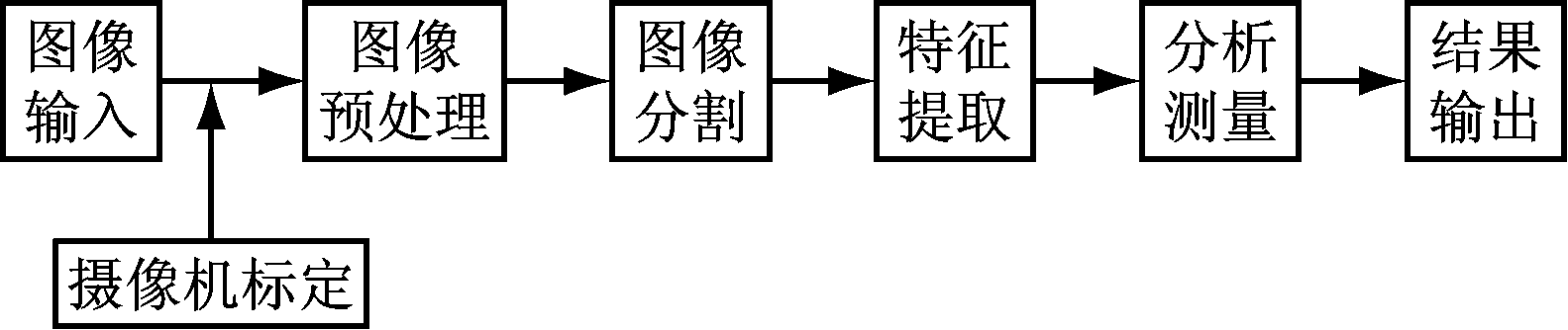 视觉测量技术出现于20世纪60年代,是一项以机器视觉为基础的新型测量技术,其优点表现为精度较高、实时性较强、信息量较大和非接触式测量[1]。随着实现成本的降低和相关软件、硬件性能的发展,视觉测量技术的优势逐渐得以显现,成为了解决工业生产过程中测量问题最有前途的技术。
