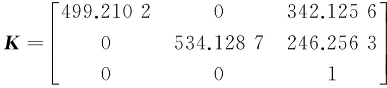 ,形变参数向量K1=[-0.432 5 0.228 7 -0.000 2 -0.001]。