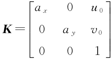 式中:s为比例因子;K为摄像机的内参矩阵,