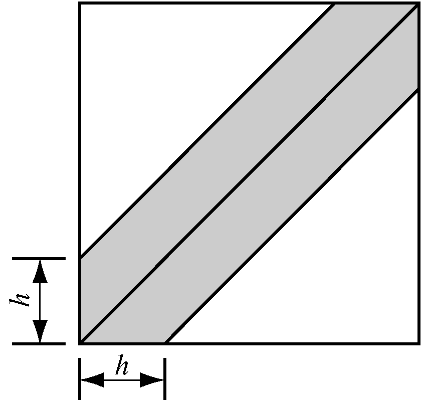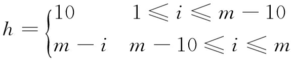 h是约束边界在y方向上离对角线的高度,也是约束边界在x方向上离对角线的宽度。根据多次测试情况得出,将Sakoe-Chiba窗的边界宽度设置为10即可包括所有的偏移路径。Sakoe-Chiba窗的参数方程为