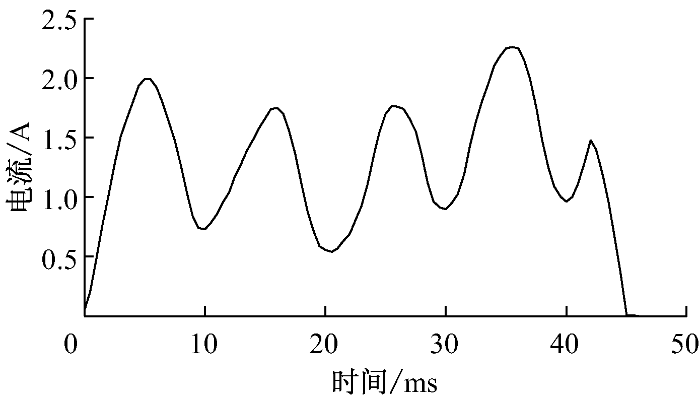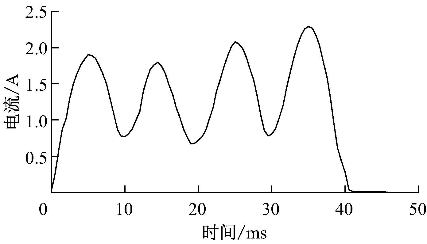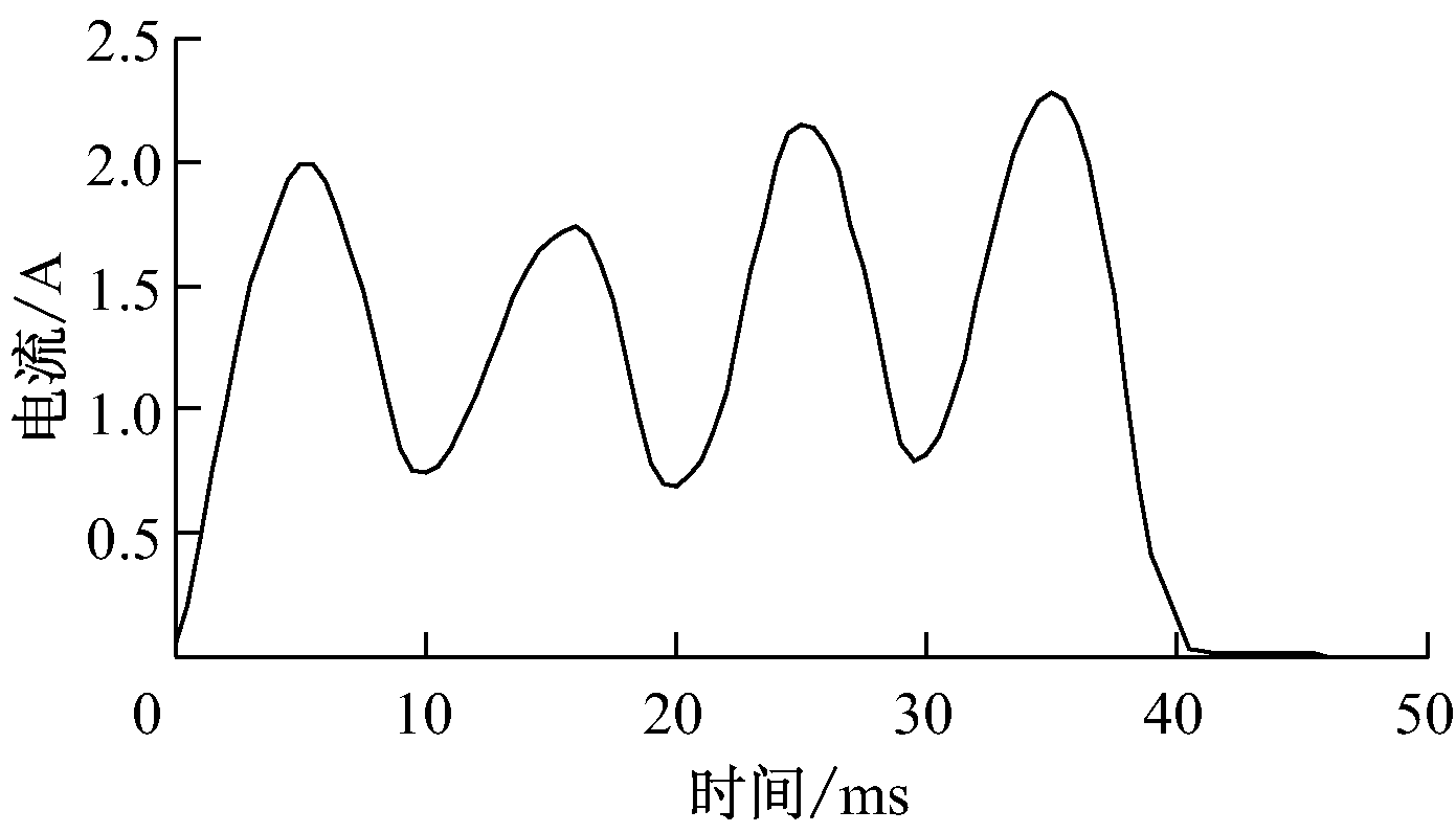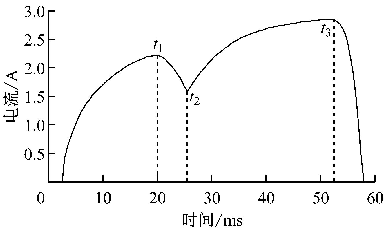 典型分合闸线圈电流波形如图1所示。参考文献[4]对图1所示的电流波形各个时刻对应分合闸线圈的状态进行了详细分析,并使用小波分析结合动态时间规整算法进行诊断故障。该故障诊断方法合理,但是其分析对象不符合分合闸线圈的实际电流波形。