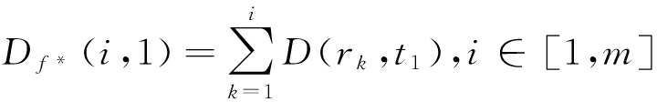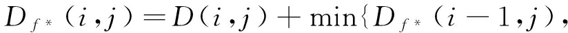 最优规整路径f*可以通过以下递归公式得到,代价矩阵第1行的元素为