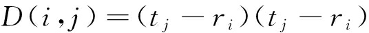 构造一个m×n阶的代价矩阵D,矩阵元素D(i,j)为ri和tj的欧氏距离,即