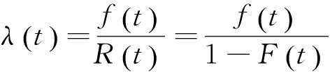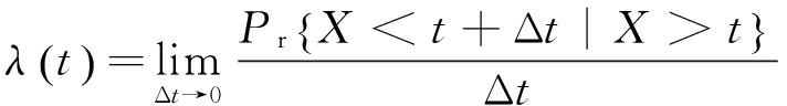 ,用于表示工作到t时刻尚未失效的产品,在t时刻后发生失效的概率。若用X表示保护装置无故障运行时间,Pr表示事件发生的概率,则失效率函数可表示为