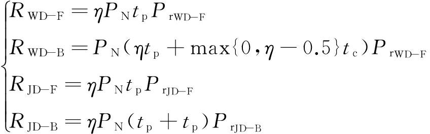 式中:IWD-F,IWD-B,IJD-F、IJD-B分别表示隐性误动风险、显性误动风险、隐性拒动风险和显性拒动风险;PN为该段线路额定传输容量;η为负载率;tp为保护装置的平均修复时间;tc为输电线路的平均修复时间。