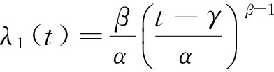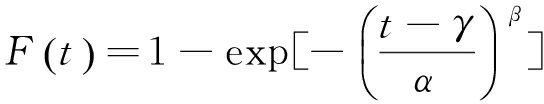当满足三参数Weibull分布时,失效分布函数与老化失效率函数分别可表示为