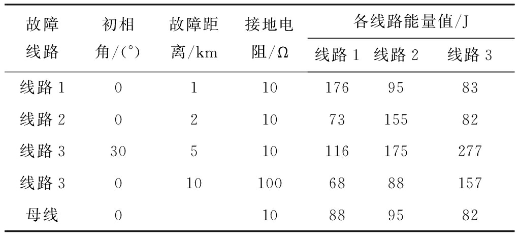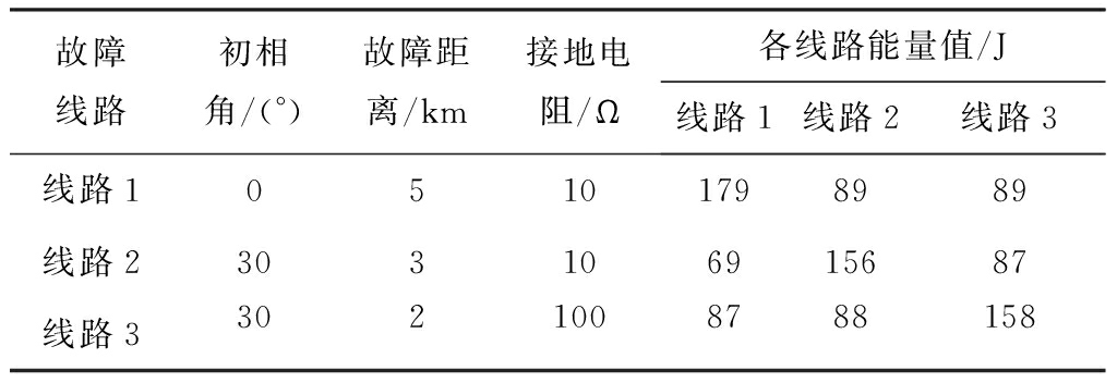 根据式(1)和式(2)计算总能量及零序电流的5次谐波能量值。线路发生单相接地故障时,各线路零序电流的5次谐波能量值见表1。