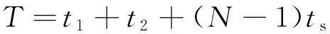 在采样频率较高时,为减小干扰的影响,t1,t2可根据式(3)、式(4)计算: