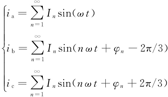 式中:U为基波电压幅值;ω为三相电压角频率;In为n次电流有效值;φn为n次电流初相角。
