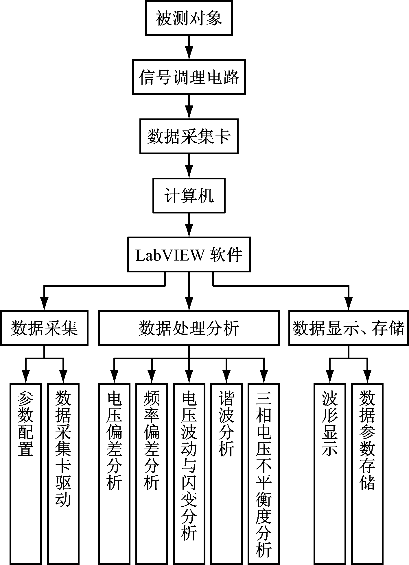 图1 基于LabVIEW的煤矿电压质量在线监测系统总体设计