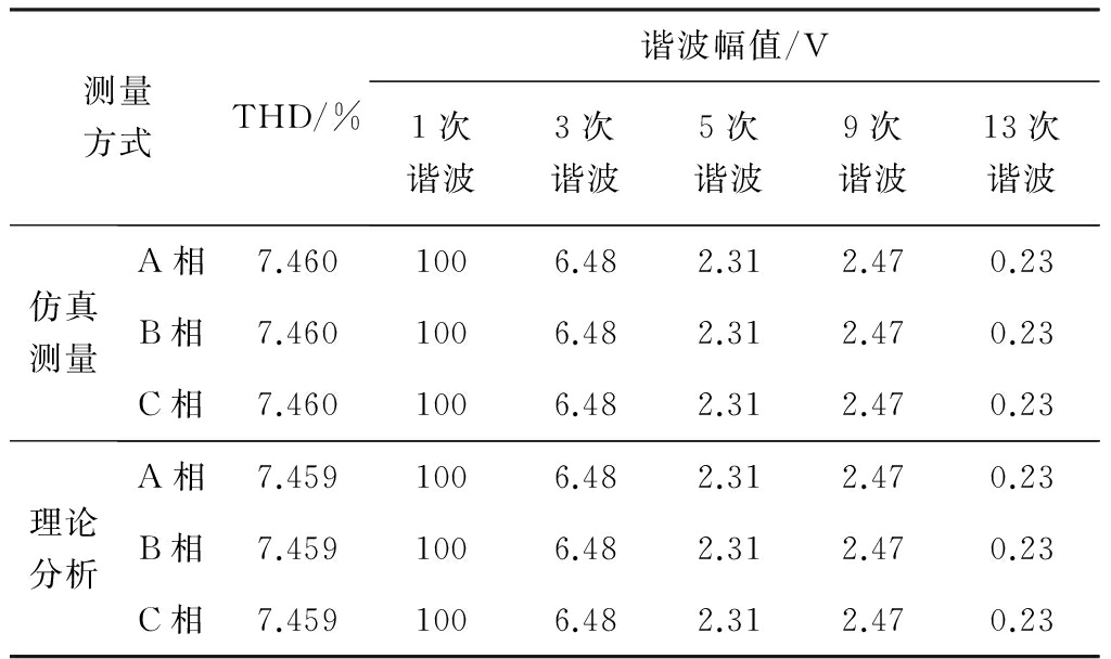 仿真实验测量的是三相仿真信号源的电压、频率、谐波、三相电压不平衡度等相关参数,验证数据记录程序的功能。实验前首先对仿真信号源、系统额定参数等进行设定。仿真信号源可以设定三相电源的相位、频率、各次谐波的电压值等参数,见表1。为了模拟电源的真实性,在参数设置中添加了奇数次的谐波参数设定,为后续验证谐波测量提供了参考。三相仿真信号源的谐波参数对比见表2,包括谐波总畸变率(THD)、各次谐波的幅值、含有量等参数的对比分析。表1、表2中,系统采样率均为2 000 Hz,采样数均为1 000。