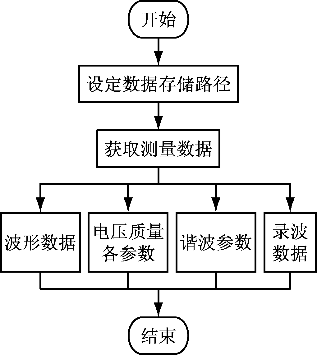 数据存储是每一个监测系统的重要组成部分,数据存储可为分析系统故障、制作报表、统计系统运行状况等提供数据资料。利用LabVIEW软件非常丰富的文件存储函数与数据库工具包可方便地建立数据存储通道,实现测量数据的存储[10]。数据存储程序流程如图11所示。