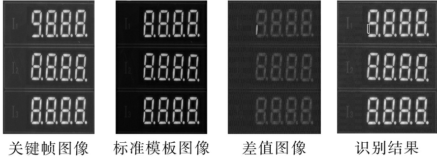 在仪表生产厂家录制15帧/s的开机录像用于检测显示质量。实验时,分别对数码管与液晶面板两类仪表进行了测试,均得到满意的结果。对于合格仪表,液晶仪表的实验结果见图8,数码管仪表结果与之类似。对于安全质量不合格的仪表样本,数码管仪表开机过程中获取到的全显信号关键帧与标准模板匹配,识别出了仪表显示存在缺段的质量问题,如图10所示。