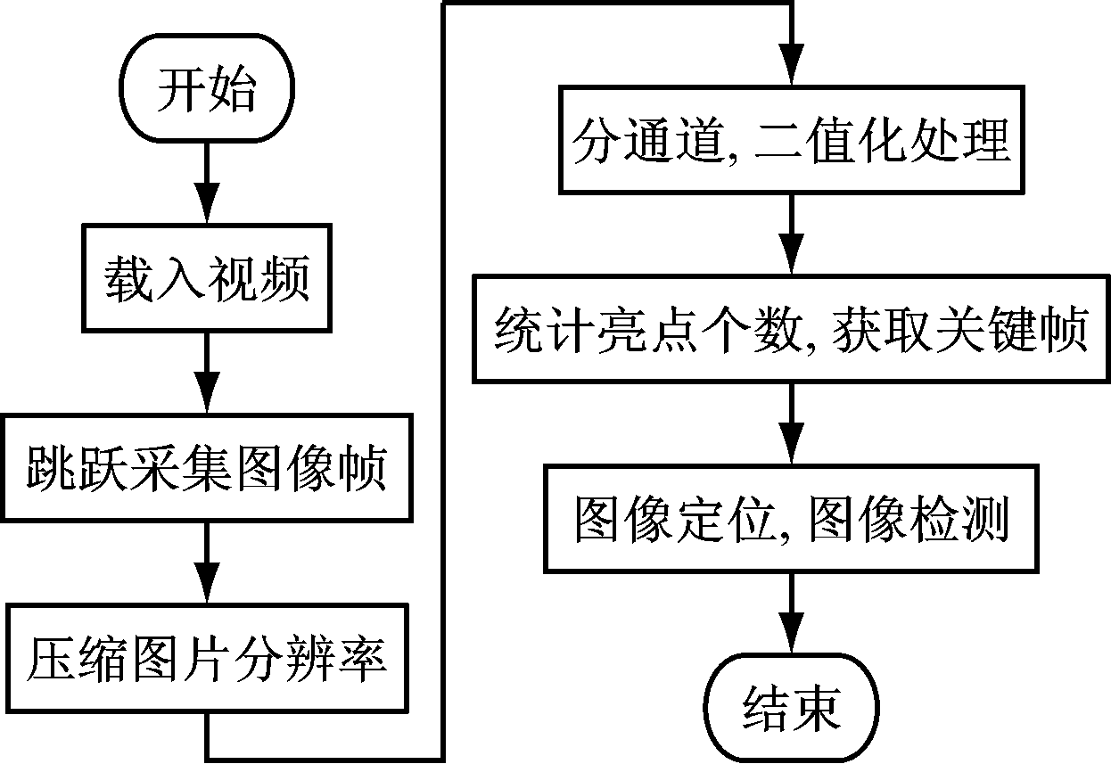 由于工业相机分辨率高,统计关键帧亮点数的时间较长,所以在实际使用时需要对其进行优化。这里使用了2种优化策略。首先,因为亮点统计规律与分辨率无关,所以可通过压缩图片、降低分辨率来加快关键帧获取速度。其次,仪表开机时不同状态会持续一定时间,同一个状态会采集到数帧相同的图像。因此,可采用跳跃统计图像帧的方式统计所有帧,以缩减检测时间。
