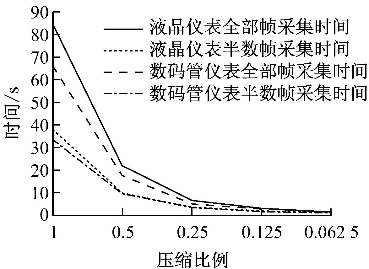 通过压缩图像加速和跳跃采集对仪表信息关键帧获取进行优化,使整个检测时间缩短,结果如图11所示。系统优化后,在分辨率高时有较大的速度提升;当分辨率低时,提升空间较小,提升效果依然存在,但不明显。