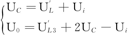 式中:UL1,UL2,UC1,UC2分别为开关V1导通时L1,L2,C1,C2两端电压;