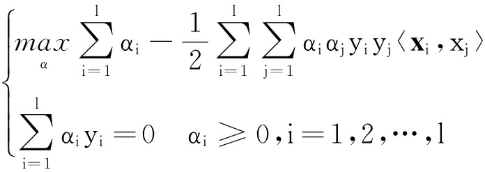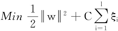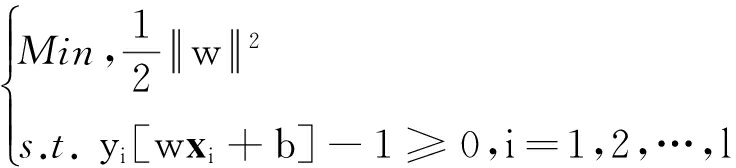 式中:(xi,yi)代表第i个样本;w,b分别为超平面的法向量和截距;l为样本个数。