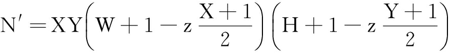 假设图像高为H,宽为W,如果特征量满足式(1),则五元组(x,y,p,h,θ)能够表示扩展Harr-Like特征中的旋转矩阵特征及竖直矩阵特征。