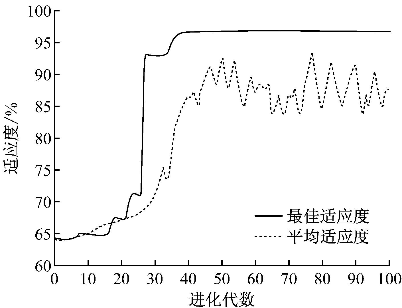 通常遗传算法的交叉概率Pc=0.6~1,变异概率Pm=0.001~0.1。在初期阶段个体适应度差异较大,较大的交叉概率及较小的变异概率可以更好地保存有用遗传信息;而在后期,个体适应度差异较小,相反的交叉概率和变异概率能够增加种群多样性。查阅相关资料后,本文使用的交叉概率和变异概率如下: