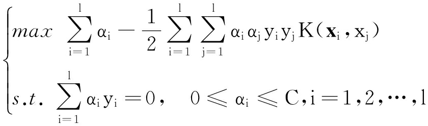 式中:C为惩罚因子,表示对训练误差的重视程度;ξi为松弛因子。