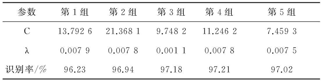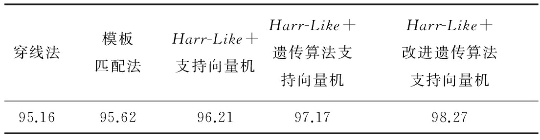 支持向量机中核函数选用高斯径向基函数,其中参数分别使用经验法、遗传算法和改进遗传算法获得。在经验法中,C=1 000,γ=0.01,遗传算法和改进遗传算法中核函数C的搜索范围设为[2-2,24],γ的搜索范围设为[2-4,24],种群数量设置为20,最大遗传进化数为100次。