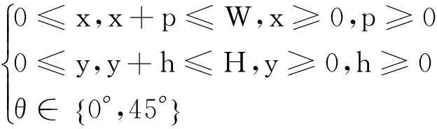 式中:x,y表示矩形的位置;p,h分别为矩形的宽和高;θ为矩形的倾斜角度。