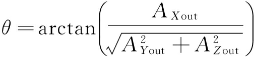 风筒通风情况变化所引起的最显著形变在风筒的截面。无风时,风筒干瘪下垂呈“I”型;通风时,风筒鼓胀呈“O”型。而三轴加速度传感芯片的姿态检测是立体的,在实际应用中只需检测风筒截面所在平面的姿态变化,提取较大的角度变化,作为主要的判别量即可。
