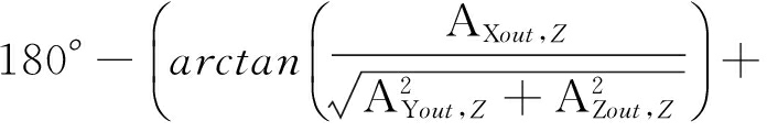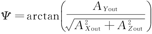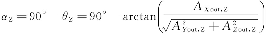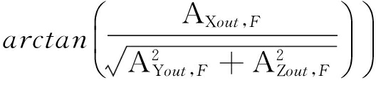 式中:AXout,Z,AYout,Z和AZout,Z分别为重力g在X1轴,Y1轴和Z1轴上的分量;AXout,F,AYout,F和AZout,F分别为重力g在X2轴,Y2轴和Z2轴上的分量。