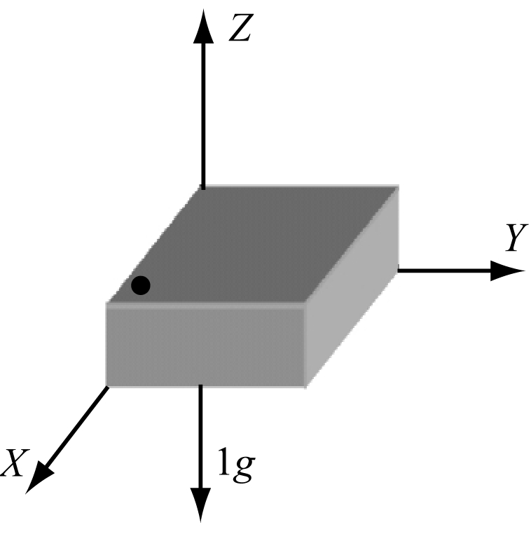 步骤1:摆放稳定后,主、副表头Z轴上分量均为1g,Y轴和X轴上分量均为0g,按下专用按键,传感器记录AD数据。