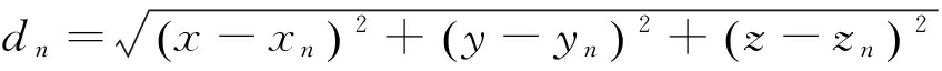 展开式(2)后,用三维LSQ算法得到坐标P: