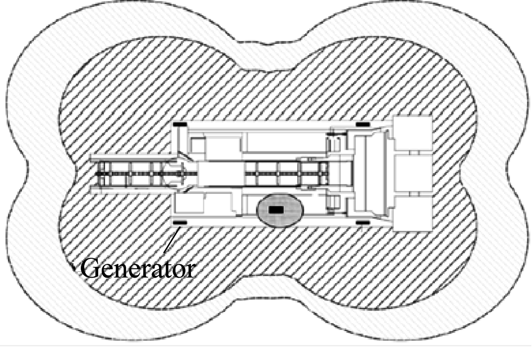 采用磁场区域标识方法的产品以HazardAvertTM系统为代表[6]。该系统采用称为Generator的装置产生椭圆体磁场覆盖,多台Generator装置可以在移动装备周边建立复杂的三维磁场区域。每个井下作业人员随身佩戴个人警告装置(Personal Alarm Device,PAD),PAD一旦进入磁场标识区域,就会被系统精确识别,如图2所示。